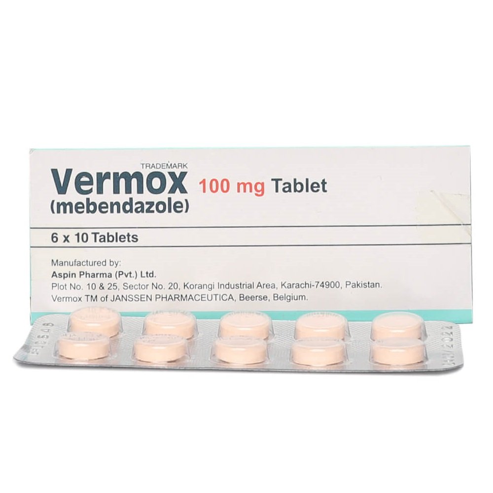 Vermox é um vermífugo de amplo espectro para o tratamento de vermes redondos, tênias e outros parasitas. É utilizado em infestações por vermes redondos (enterobíase ou oxiúria), ascaridíase (ascariasis), flaxogla (tricuríase), anquilostomas (anquilostomíase), teníase (teníase) e vermes redondos anões (strongiloidíase). Geralmente está disponível na forma de comprimidos, mas as farmácias também vendem na forma de xarope suspenso. É tomado por via oral.